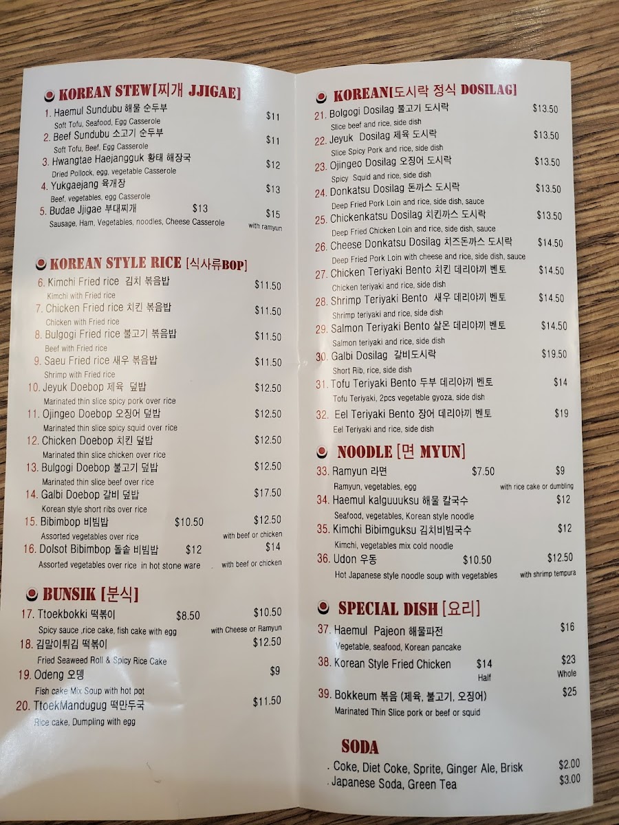 “ Came here for lunch with my 9 yr old son. Bulgogi lunch special was a great deal for like 12 bucks. Came with soup and salad, Bulgogi with rice - and 4 pieces of California roll. Very tasty. My kid only wanted a plain bowl of noodles, which they made for him and only charged a few dollars. (he made up for the savings by crushing the Japanese sodas). The service was really good, the owner even came out and said hi and taught my son how to say thank you in Korean. I'm surprised by some of the reviews here on that - maybe they fixed it now. Decor is fantastic. There are little porcelain samurai and geisha dolls all around and really cool Asian wall art. Very bright and clean! Half the tables were full on a middle of the week at lunch. Next time I'll come back and try the dinner. ”